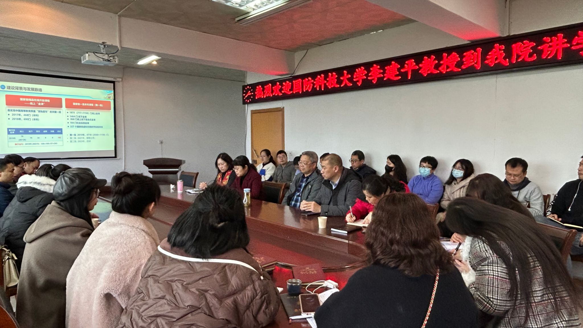为推动学院专业发展和课程建设,加快学院国家级一流课程的培育和建设,3月25日下午,beat365官网特邀国防科技大学李建平教授在千禧楼会议室开展了一场题为“国家级一流本科课程的建设”的精彩讲座,党总支书记曹丽敏、副书记陈雅斐、副院长杨海、陈晓华以及全体教师参会。