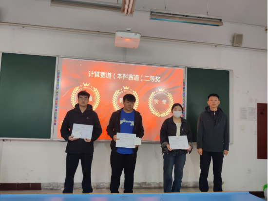 李阳副院长为获得二等奖学生(史海巍、郭俊豪、狄莹)颁奖