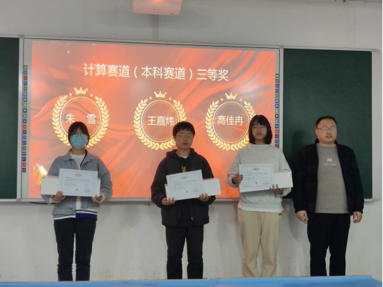 李源主任为获得三等奖学生(朱雪、王嘉炜、高佳冉)颁奖