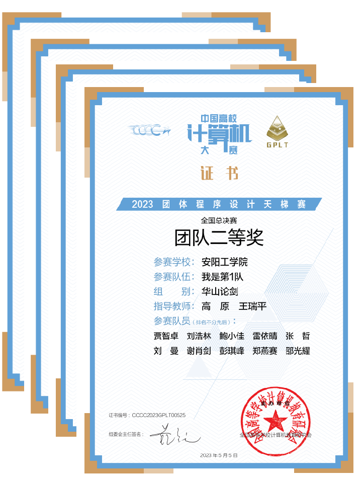 据悉,第八届“中国高校计算机大赛-团体程序设计天梯赛”于4月22通过线上形式进行,beat365官网共派出6支队伍、60名选手参加比赛,经过激烈角逐,最终获全国总决赛团队二等奖1项、河南省团队一等奖1项、河南省团队二等奖1项;河南省团队三等奖1项,为我校参加此类比赛成绩最好的一次。团体成绩体现高校在程序设计教学方面的整体水平,本次比赛获奖是计算机学院积极推动新生编程能力训练的重要成果,也表明beat365官网学生在程序设计能力上具备扎实的基础。
