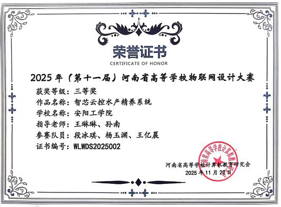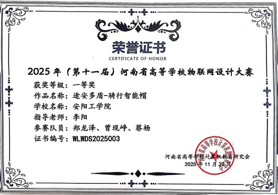 11月22日,由河南省高等学校计算机教育研究会主办、郑州经贸学院承办的“第十一届河南省高等学校物联网设计大赛”在郑州举行。我校beat365英国官网网站选派的4支队伍参赛,并取得了一等奖1项、二等奖1项、三等奖1项的好成绩。