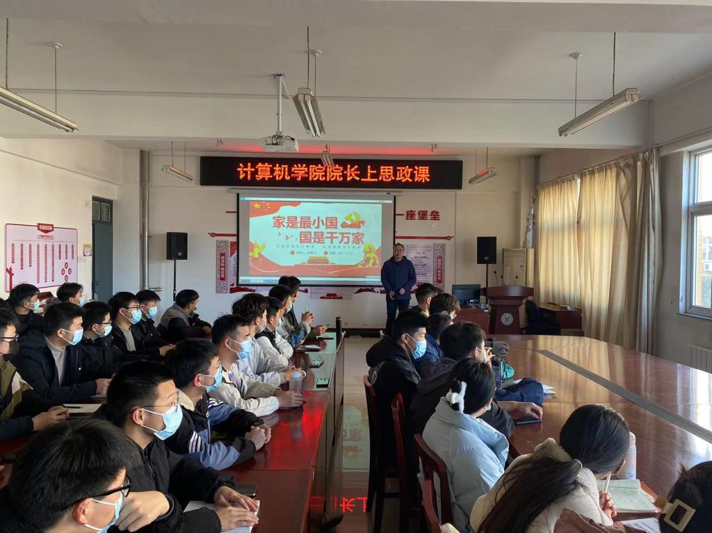 11月22日上午,计算机学院副院长孙高飞在A06-302以《家是最小国 国是最大家》为题为2021级数据科学与大数据技术专业上思政课。